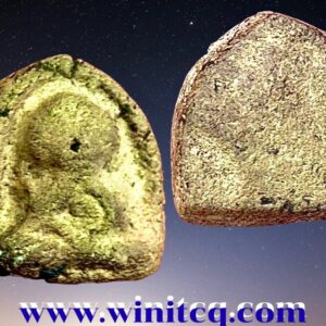 หนุมานอาสาเนื้อผงพุทธคุณผสมว่านพระปลัดทองดี วัดท่าเกวียน นนทบุรี ผู้ที่ได้รับการขนานนามว่า “ผู้ชนะสิบทิศ” ท่านสำเร็จวิชาจากหลวงพ่อแช่ม วัดตาก้องตั้งแต่ยังเป็นเณร กล่าวกันว่าท่านสร้างในช่วงปี พ.ศ. 2460-80 วัดท่าเกวียน วัดสพานสูง วัดศาลากุล อยูู่ระแวกเดียวกัน คนละฝั่งแม่น้ำ ท่านจึงเป็นสหธรรมิกกับหลวงปู่กลิ่น วัดสะพานสูง และหลวงพ่อสุ่น วัดศาลากุล การสร้างหนุมานของท่านนั้นเชื่อกันว่าผงคลุกรักนี้ได้มาจากหลวงพ่อกลิ่น วัดสะพานสูง แล้วผสมกับว่านมงคลของท่านเอง หนุมานของท่านมีสองพิมพ์ (ใหญ่, เล็ก) ที่เคยพบจะมีเนื้อผงว่านยา จุ่มรักปิดทอง เนื้อว่านสบู่เลือด จุ่มรักปิดทอง เนื้อชานหมากหรือเนื้อว่านยา อานุภาพด้านป้องกันภัย คงกระพันชาตรี เมตตามหานิยม มหาเสน่ห์ แคล้วคลาดคงกระพัน ขนาด 1.5 x 2.7 ซม. 1,500.- บาทครับ.