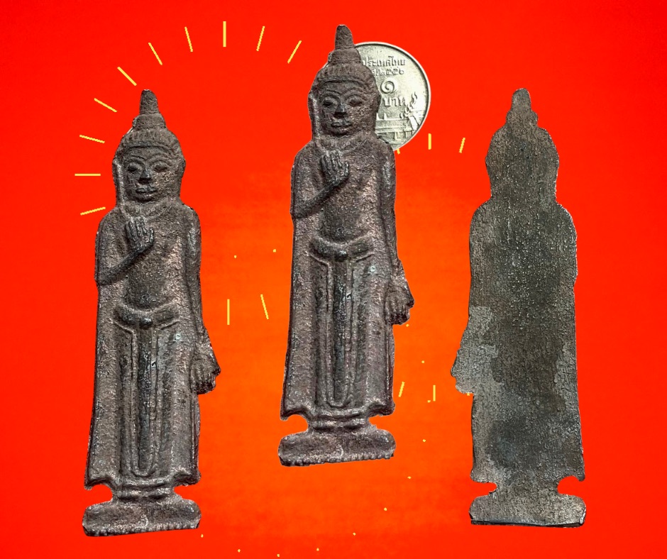 พระโมคคัลลาน์-สารีบุตร เนื้อชินเงิน พระพิมพ์นี้มีขึ้นมาสองกรุ ๆ วัดราชบูรณะ อยุธยา และกรุวัดท้าวโคตร นครศรีธรรมราช แต่วัดท้าวโคตรเนื้อชินเงินจะหนากว่าของวัดราชบูรณะ องค์ที่นำมาเสนอนี้ได้มาจากนครศรีธรรมราชเมื่อปี 2524 (ยุทธการไต้ร่มเย็น) พิจารณาแล้วไม่หนาและไม่บาง น่าจะเป็นของกรุวัดท้าวโคตรมากว่ากรุวัดราช ฯ ซะแล้ว ขนาด 6.5 x 9.0 ซม. พระมีรอยตอกห้อยข้างฝา 2,000.- บาทครับ.