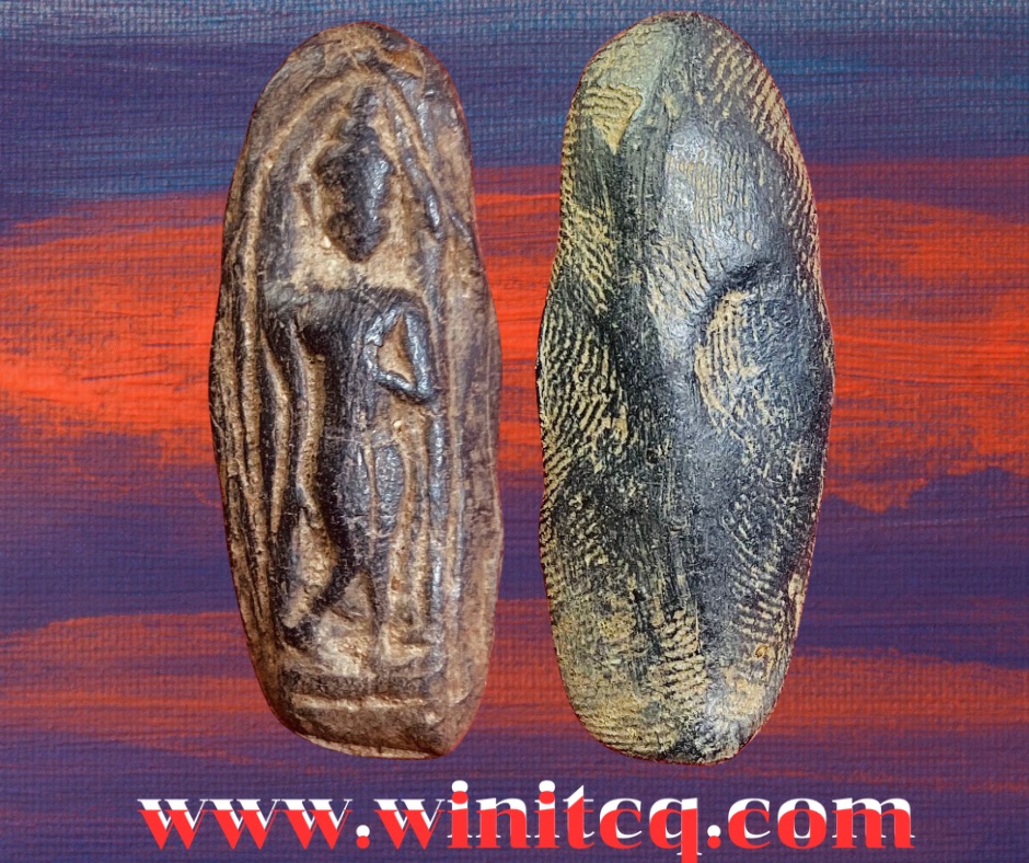 พระกำแพงลีลาเม็ดขนุนกรุวัดซุ้มกอ กำแพงเพชร สันนิษฐานว่าสร้างพร้อม ๆ กับพระซุ้มกอ โดยพระมหาธรรมราชาลิไทย ที่ 1 แห่งราชวงศ์พระร่วงเจ้า เมื่อประมาณปี พ.ศ. 1900 ครั้งที่พระองค์เสด็จมาสถาปนาวัดพระบรมธาตุ ณ เมืองนครชุม พระเม็ดขนุนพบทั้งฝั่งลานทุ่งเศรษฐีและฝั่งเมือง ฯ แต่ค่านิยมฝั่งเมืองจะด้อยกว่าฝั่งทุ่ง ฯ องค์ที่นำเสนอนี้ขึ้นที่กรุวัดซุ้มกออยู่ฝั่งนครชุมในทุ่งเศรษฐี เป็นพิมพ์กลางเนื้อเทาดำคราบน้ำตาล สภาพมาเก่าเดิมจากกรุ ขนาด 1.7 x 4.3 ซม. 3,000.- บาทครับ.