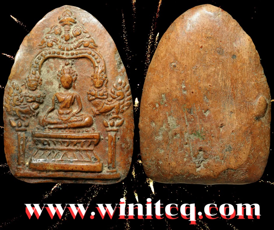 พระซุ้มหน้าบรรณคอระฆังกรุวัดอรัญญิก พิษณุโลก ตั้งตามซื่อวัดที่กรุแตกวัดแรกคือ “วัดอรัญญิก” อยู่ห่างจากตัวเมืองพิษณุโลกประมาณหนึ่ง กม. สร้างขึ้นในสมัยสุโขทัยยุคปลาย กรุแตกครั้งแรก ปี 2450 และอีกหลายครั้ง ปี 2496 เป็นการเปิดกรุครั้งใหญ่ มีเนื้อดินและเนื้อชิน องค์นี้เนื้อดินพิมพ์หน้าบรรณขึ้นจากกรุมาน้อยกว่าพิมพ์อรัญญิก สภาพสมบูรณ์สวยคมชัด ขนาด 4.5 x 6.0 ซม. 1,500.- บาทครับ. http://www.winitcq.com