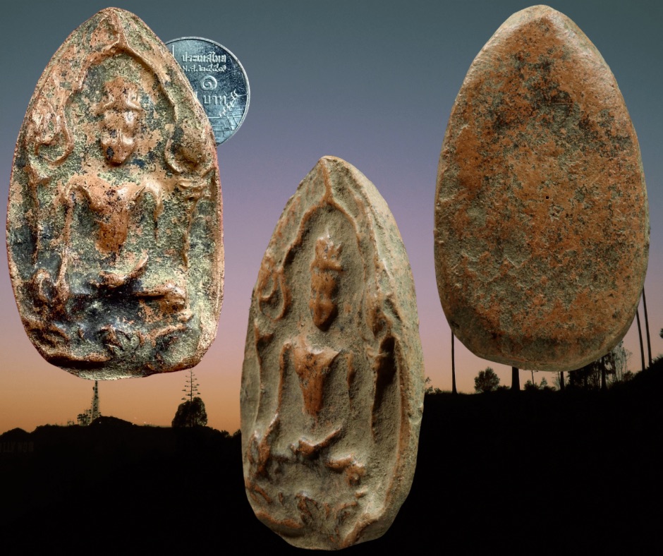 พระยอดขุนพลเสมาตัดกรุวัดพระบรมธาตุ กำแพงเพชร “พระยอดขุนพล” ที่มีชื่อเสียงตั้งแต่อดีตจนถึงปัจจุบันมีอยู่ 3 เมืองคือ.- พระยอดขุนพลชากังราว (กำแพงเพชร) พระยอดขุนพลอโยธยา (อยุธยา) และ พระยอดขุนพลกรุงละโว้ (ลพบุรี) พระยอดขุนพลซากังราว สมัยก่อนชาวเมืองกำแพงเพชรเรียกพระพิมพ์นี้ว่า "พระกำแพงเสมาตัด" สมัยนี้ไม่แน่นอน องค์นำมาเสนอองค์นี้สภาพเดิมปัดแต่ฝุ่นไม่ผ่านการล้างจากกรุวัดพระบรมธาตุ ขนาด 3.5 x 6.0 ซม. 2,000.-บาทครับ.