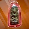 พระลีลาเชยคางข้างเม็ด ปี 2505 หลวงพ่อทาบ วัดกระบกขึ้นผึ้ง ระยอง เป็นเนื้อดินผสมสีผึ้งเขียวทารัก ปลุกเสกสองวาระ ๆ แรกหลวงพ่อทาบปลุกเสกเดี่ยว วาระสองพิธีพุทธาพิเษกใหญ่ หลวงปู่ทิม วัดละหารไร่ มาเป็นประธานพิธีปลุกเสกร่วมกับพระเกจิย์อีกหลายรูปเช่น.- หลวงพ่อหอม วัดซากหมาก ฯลฯ เมตตามหานิยม โชคลาภ ปกป้องคุ้มภัย ขนาด 1.3 x 3.5 ซม. 500.- บาทครับ. (เป็นครั้งแรกที่หลวงปู่ทิม ฯ ออกมาปลุกเสกนอกวัด)