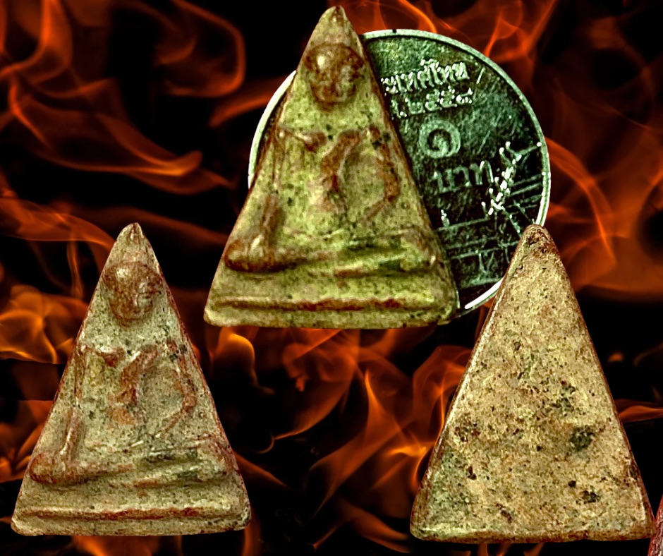 พระนางกำแพงเนื้อดินกรุวัดพิกุล กำแพงเพชร เป็นหนึ่งของฉายา “มีกูไว้ไม่จน” ค้นพบหลายกรุหลายจังหวัด และหลายทรงพิมพ์ แต่ที่นิยมสูงกว่ากรุอื่นคือกรุวัดพิกุล และกรุวัดบรมธาตุ เพราะเป็นกรุหลักที่อยู่ในบริเวณทุ่งเศรษฐี เป็นเนื้อดินผสมว่านเนื้อจะหนึกนุ่มงามตากว่า พุทธคุณครบเครื่องทั้งเมตตามหานิยม แคล้วคลาด คงกระพันชาตรี เช่นเดียวกับพระซุ้มกอ องค์นำเสนอนี้เป็นนางพิมพ์ตื้น (บาง) ขนาด 1.5 x 2.2 ซม. สภาพสมบูรณ์เดิมจากกรุ บินลงจากหิ้งบูชาเพราะข้าวยากหมากแพง 1,000.- บาทครับ.