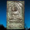 เหรียญสี่เหลี่ยมพิมพ์ข้างรัศมีประภามณฑลเนื้อชินเงินผิวปรอท หลวงปู่ศุข วัดปากคลองมะขามเฒ่า ชัยนาท ด้านหลังจารอักขระเต็มพื้นที่ สร้างที่วัดปากคลอง ฯ ประมาณปี 2450 – 2460 ส่วนมากที่พบเห็นทั่วไปจะเป็นเนื้อชินตะกั่วและเนื้อโลหะหลายแบบ เนื้อชินเงินพบเห็นน้อยกว่าเนื้ออื่น ๆ ขนาด 1.5 x 2.0 ซม. 3,500.- บาทครับ.