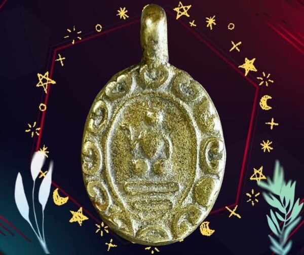 เหรียญหล่อโบราญพิมพ์พระพุทธสองหน้าเนื้อทองผสม หลวงพ่ออิ่ม วัดหัวเขา สุพรรณบุรี