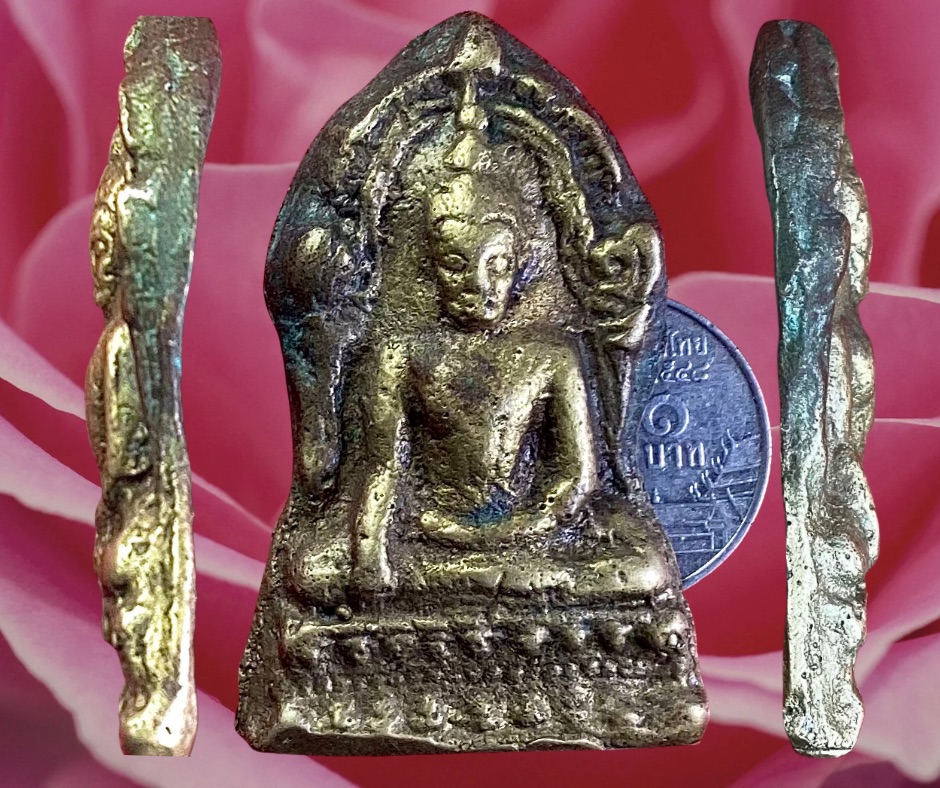 เหรียญหล่อพระพุทธชินราชใบเสมาเนื้อทองผสม หลวงพ่อโบ๊ย วัดมะนาว สุพรรณบุรี หลวงพ่อโบ๊ยท่านสร้างพระเครื่องเนื้อทองผสมในปี 2473 น่าจะถึง 30 พิมพ์ โดยสร้างล้อพิมพ์ต่าง ๆ ของพระเก่า พระกรุ และพระเกจิอาจารย์ที่ท่านนับถือ เหรียญหล่อชินราชพิมพ์นี้พบที่กรุวัดใหญ่พิษณุโลก (เนื้อสำริด) กรุวัดหอกลอง พิษณุโลก (เนื้อสัมริด) วัดเบญจมบพิตร กทม. สร้างปี 2453 (เนื้อสัมริด) องค์ที่นำมาเสนอองค์นี้เป็นเนื้อทองผสมของหลวงพ่อโบ๊ย วัดมะนาวสร้างประมาณปี 2473 สภาพสวย ขนาด 2.7 x 4.5 ซม. จุดจ่ายตังด้านหลังลายผ้าหยาบ 1,500.- บาทครับ.